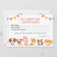 Convite modelo de certificado de adoção de animais de esti