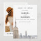 Este modelo de data de salvamento para impressão DIY apresenta uma pintura em aquarela da silhueta da cidade de Nova York. Use este modelo para editar todas as palavras, fonte, cor da fonte e cor do fundo para combinar com o estilo do seu evento. Adicione sua própria foto ou gráficos facilmente a este modelo.
