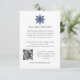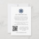 Projetado para combinar com nossa coleção de Casamento de Inverno Elegante Snowflake, este modelo de cartão de casamento com tema de neve apresenta um pequeno floco de neve em estilo minimalista em azul marinho no topo dos detalhes de acomodação de texto personalizado e código QR.