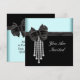 Convite de festa azul turquesa com laço de diamantes branco, azul turquesa e preto para aniversário, casamento, aniversário de casamento, aposentadoria corporativa, modelo de convite de festa azul turquesa e preto.