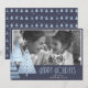 Este cartão de Natal caprichoso apresenta uma bela disposição de árvores de Natal estilizadas e flocos de neve em tons de azul-celeste e ardósia sobre um fundo azul-marinho. O texto opcional "Felizes Festas" e um modelo foram fornecidos para adicionar sua foto, nome e/ou outro texto. O verso é um padrão de árvore de Natal correspondente. Procure por ID861 até ID864 para ver opções de cores adicionais e outros produtos neste conjunto de design de Natal moderno.