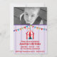 Este divertido convite de aniversário de circo apresenta uma tenda e faixas de circo listradas, um lugar para a fotografia de uma criança, e um texto personalizável para personalizá-la para torná-la uma espécie.