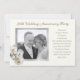 Convite de aniversário de casamento de prata com modelo de foto. Cor ecru com moldura cinza prateada em torno de uma imagem do casal. Orquídeas brancas com centros amarelos decoram o canto inferior e o texto também é cinza prateado. Personalize uma linha na parte superior com o ano de casamento e o tipo de encontro - festa ou renovação de votos - e adicione facilmente todas as informações da festa usando o modelo fornecido. Adicione espaços conforme necessário para nivelar o texto. O verso é cinza sólido.