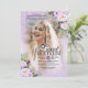 Bonito, moderno, púrpura cúbica (faux), fundo brilhante e delicado design de fronteira floral feminina para este modelo fotográfico, formulados convites de festas adoráveis apenas para ela.