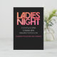 Desenho decorativo de texto para Noite das Senhoras, Festa de Despedida de Solteira ou outra ocasião feminina. Design retrô e groovy de discoteca. Tons laranja e rosa. Crie seu próprio convite ou anúncio adicionando seu próprio texto no modo EDITAR.