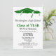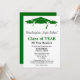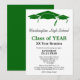 Este modelo de convite de reunião de classe minimalista em formato vertical apresenta texto preto e verde em um fundo totalmente branco com três boinas de graduação verdes como borda superior. A parte de trás é um azul sólido correspondente. Personalize suas informações, remova informações ou edite usando a ferramenta de design para selecionar uma cor, tamanho e estilo de fonte de sua preferência.
