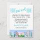 Este convite de festa de casa nova apresenta uma pitoresca silhueta da cidade em tons pastéis ao longo da parte inferior. Todos os detalhes da festa estão na frente. O verso é um simples desenho geométrico de diamante na cor de texto azul da frente. Preencha os campos de texto do modelo em personalizar com suas informações.