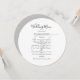 Tema redondo, ou quadrado, neutro, modelo de cardápio de casamento com monograma inicial em cinza. Os cartões brancos têm um script preto para o título e o texto impresso para a lista de menus. Use espaços e letras maiúsculas para seções ou altere o texto conforme necessário. O monograma do casamento do casal será impresso no centro por trás da redação. O reverso corresponde à cor da cinza.