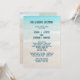Programa de cerimônia de casamento em praia com água azul e areia da praia. O texto impresso alto é azul-escuro e é impresso sobre uma imagem de fundo dos mares tropicais. O design é perfeito para qualquer pequena cerimônia de casamento, casamento privado ou elopeio. Crie como um guardião do dia. Compartilhe digitalmente se você escolher.