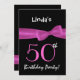 Este design preto e rosa com seu arco magenta falsa impresso é uma maneira bonito e elegante de convidar as pessoas para uma celebração da 50ª festa de aniversário. Todo texto é totalmente personalizável. Você pode experimentar diferentes tipos de papel clicando na guia "Opções de Convite" no canto superior direito. Esta design é apresentada num papel metálico de gelo encantado, que dará aos seus convites de aniversário um shimmer festivo e brilho.