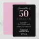 Convite Modern 50 Fabulous 50th Birthday Black Pink Party