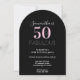 Convite Modern 50 Fabulous 50th Birthday Black Pink Party