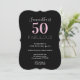 Convite Modern 50 Fabulous 50th Birthday Black Pink Party
