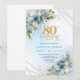 Convite Modern 80th Birthday Invite Boho Dusty Blue Floral