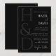 Convite Modern Black and White Monogram Minimalist Wedding