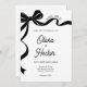 This modern black bow invitation blends a clean minimal layout with an elegant ribbon illustration for a simple and stylish wedding look. The bold contrast of black against white creates a crisp, timeless feel that works beautifully for classic, contemporary, or black tie celebrations. The text is fully editable, and you can also change the bow color to suit your palette, making it easy to personalize this card for your day. This design coordinates with matching pieces in the suite to carry the same modern bow aesthetic throughout your event.