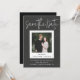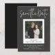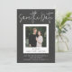 This modern wedding save the date invitation is a casual thoughtful design for couples who want to announce their engagement in style. Your engagement photo of choice is front and center in a snapshot style photo frame and custom text in a handwritten style. This is a fully customizable wedding save the date template in onyx black with a subtle faux fabric overlay. All colors and text can be changed in the design tool - make all the changes you want and make this save the date invitations uniquely yours!