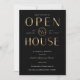 Create stylish business event invites for your house warming or new business party with this faux gold effect Open House Invitation. This modern black and gold open house event invitation features a trendy layout with sophisticated fonts, space for your logo and event details, perfect to invite guests to your Housewarming Celebration.