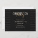 The front of the invitation showcases a bold “Graduation Party” headline in elegant gold script on a sleek black background, creating a sophisticated and timeless look. The back design includes a graduation photo area with inspirational achievement words, making it the perfect keepsake for celebrating this special milestone.