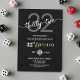 A modern minimalist design featuring elegant calligraphy on a black background. Customize the details for a cool Birthday Celebration.