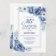 Convite Modern Blue Floral Surpresa 85ª Festa de aniversár