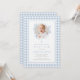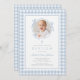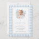 Modern Blue Gingham Bow Photo Boy Baptism Invitation. For best results upload a square image of the baby.