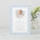 Convite Modern Blue Gingham Bow Photo Boy Baptism