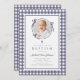 Modern Blue Gingham Photo Boy Baptism Invitation. For best results upload a square image of the baby.