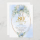 Convite Modern Blue Hydrangea Gold Frame 80th Birthday