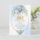 Convite Modern Blue Hydrangea Gold Frame 80th Birthday