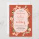 Modern Boho fall terracotta floral guião convite para o casamento com bonito mão pintada de tons quentes de terracotta, pêssego e verde escuro com uma máscara redonda. Perfeito para o outono, festa de casamento temática. Com uma tipografia moderna no terraço escuro.