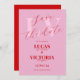 Convite Modern Bright Pink e Red Wedding salve data