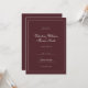 Invite your guests with timeless elegance using this Modern Burgundy Wedding Invitation. Featuring a clean minimalist design paired with rich burgundy tones, this invitation sets the perfect tone for a sophisticated and romantic celebration. Ideal for fall or winter weddings, it’s a stylish way to announce your big day with modern charm.