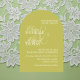 Invite guest to your big day with this Modern Script Citrus Green Formal Arch Wedding Invitation! This design features elegant script font with a luxe green color perfect for your formal wedding. Easily customize the details with Zazzle's design tool! Have a custom request? Message me!