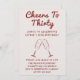 Celebrate turning thirty in style with this elegant “Cheers to Thirty” birthday invitation. Designed with a clean minimalist layout, it features bold script lettering and a chic line-art illustration of clinking champagne glasses—perfect for a sophisticated adult celebration.