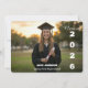 Celebrate the graduate's big achievement with this modern and bold photo graduation announcement. The design features a full-bleed photo of the graduate on the left, paired with large, vertical "Class of 2026" typography on the right in clean white text. Below the photo, there is space to personalize with the graduate's name (shown as "ALEX JOHNSON") and their school name ("Spring Field High School"). This flat announcement card is perfect for sharing the news with friends and family and serves as a wonderful keepsake of their milestone.