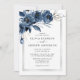 Convite Modern Classic Navy Blue & Silver Floral Wedding