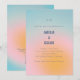 This wedding invitation has a soft, dreamy gradient background that moves from blue at the top through pink and into warm yellow at the bottom, with the couple's names in bold blue type front and center. The back includes a QR code for easy online RSVPs — a modern touch guests will actually appreciate.