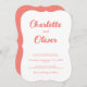 Convite Modern Coral Pink White Script Decorative Wedding