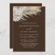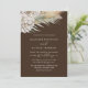 Elevate your wedding stationery with this elegant invitation featuring original watercolor pampas grass, off-white florals, and earthy palm foliage set against a rich dark brown background. The warm, moody tone beautifully enhances the soft botanical artwork, creating a modern yet rustic aesthetic perfect for boho, desert, autumn, or neutral-themed weddings. Fully customizable, this invitation offers a sophisticated and unique way to showcase your wedding details.