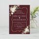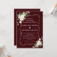 Convite Modern Deep Burgundy White Ivory Flowers Wedding