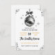Get ready to dance the night away! This chic New Year’s Eve invitation features a retro-inspired disco ball hanging from a classic black bow, perfect for a high-energy "Ring in the New Year" celebration. The clean white background is accented with silver streamers and sparkling stars, creating a festive, mirror-ball effect that stands out. The layout features a stylish mix of gold and black typography, including an elegant script for the host's name and modern block lettering for event details.