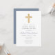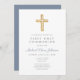 Moderno Dusty Blue Cross Boy Primeiro Sagrado Convite Comunitário.