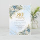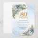 Convite Modern Dusty Blue Floral Gold 80th Birthday Deluxe