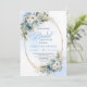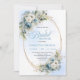 Convite Modern Dusty Blue Flowers Gold Frame Bridal Shower