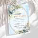 Ideal for classic, modern, garden, or elegant Quinceañera themes, this invitation combines delicate blue hues with warm gold details to achieve a look that feels both sophisticated and youthful. The greenery and eucalyptus bring freshness and balance, while the gold accents add just the right amount of sparkle for a meaningful 15th birthday celebration. Whether you are planning a formal Quinceañera, a traditional fiesta, or an intimate family gathering, this invitation sets a beautiful and memorable tone.