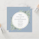 Apresentando delicadas folhas de cor-de-água verde em um fundo azul empoeirado, este único convite de casamento botânico na moda pode ser personalizado com suas informações especiais sobre o dia do casamento. Projetado por Thisnotme©