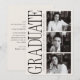 This graduate announcement features a bold editorial typography layout paired with a clean, modern photo grid for a striking and confident presentation. The oversized vertical “Graduate” headline creates a strong visual statement, while the black-and-white photography adds a timeless, elevated feel inspired by fashion editorials and modern print design.