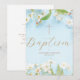 Convite Modern Elegant Script Blue Flowery Cross Baptism