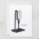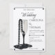 A sophisticated wedding invitation featuring a modern black and white design with elegant pearl accents and a refined champagne glass illustration.